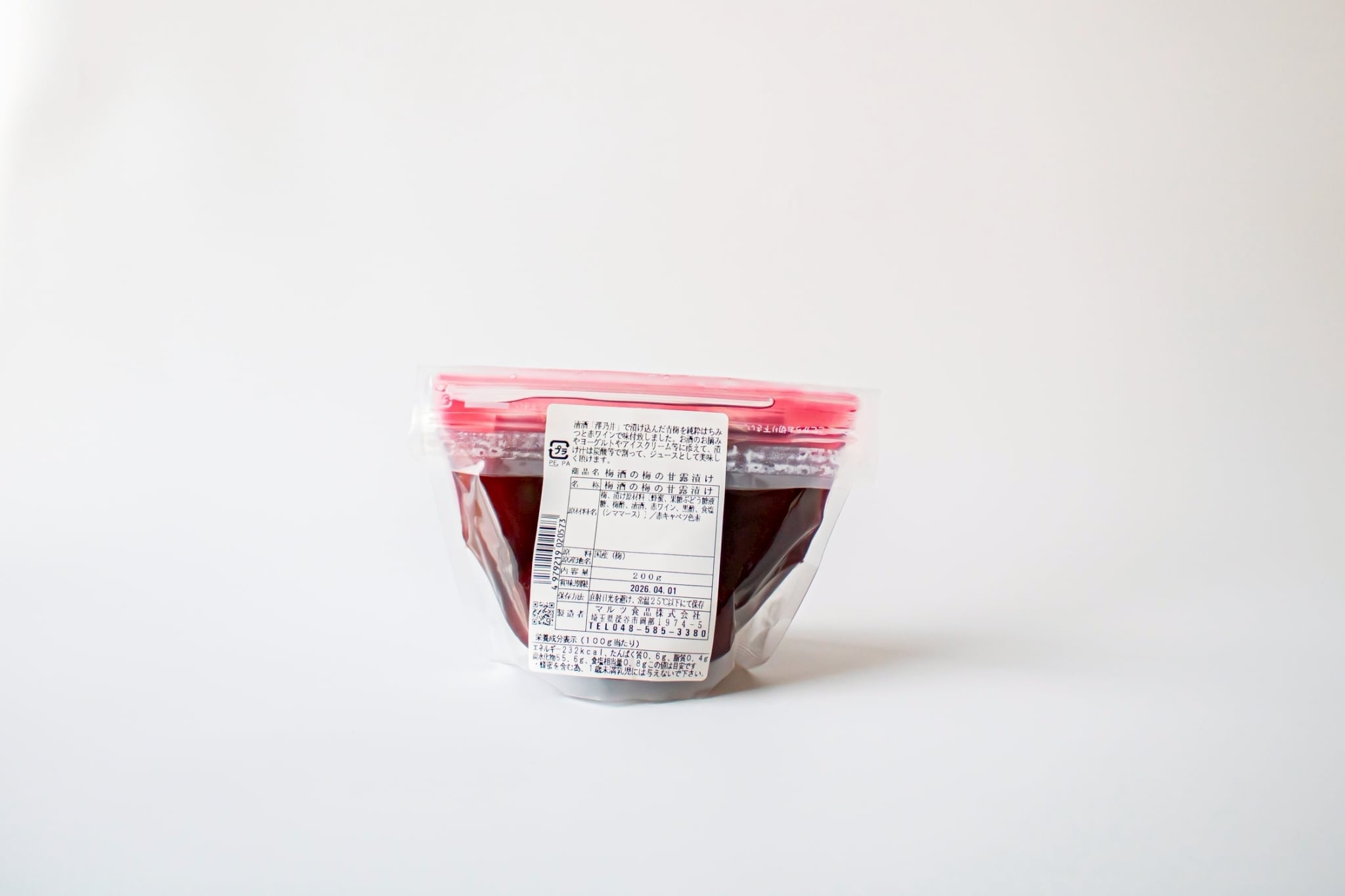 梅、漬け原材料(蜂蜜、果糖ぶどう糖液糖、梅酢、清酒、赤ワイン、黒酢、食塩(シママース))/赤キャベツ色素
